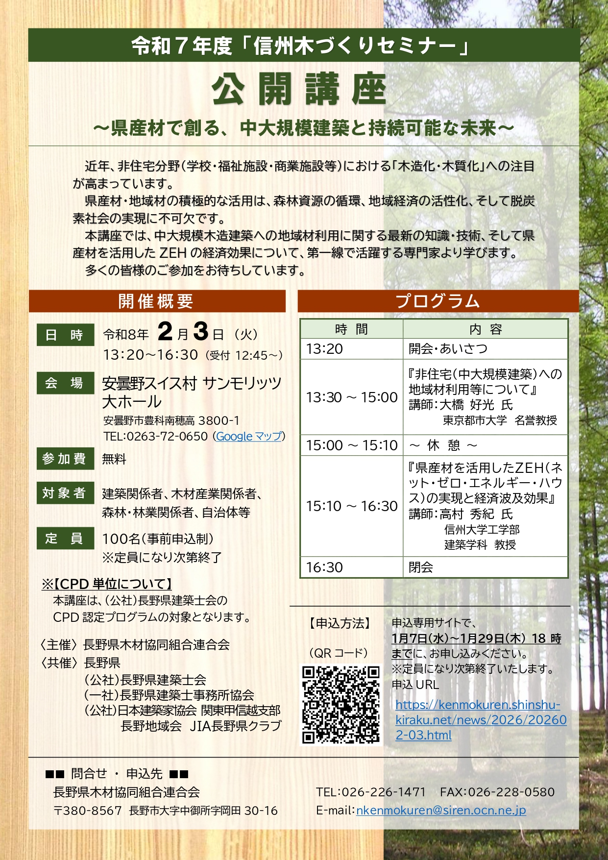 本講座は、(公社)長野県建築士会のCPD認定プログラムの対象となります。